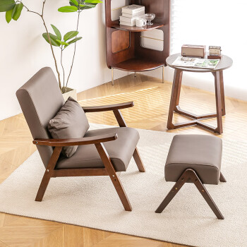 邦尼娅实木休闲椅懒人沙发椅民宿酒店客房卧室单人椅子阳台客厅洽谈组合 胡桃棕色猫抓皮单人